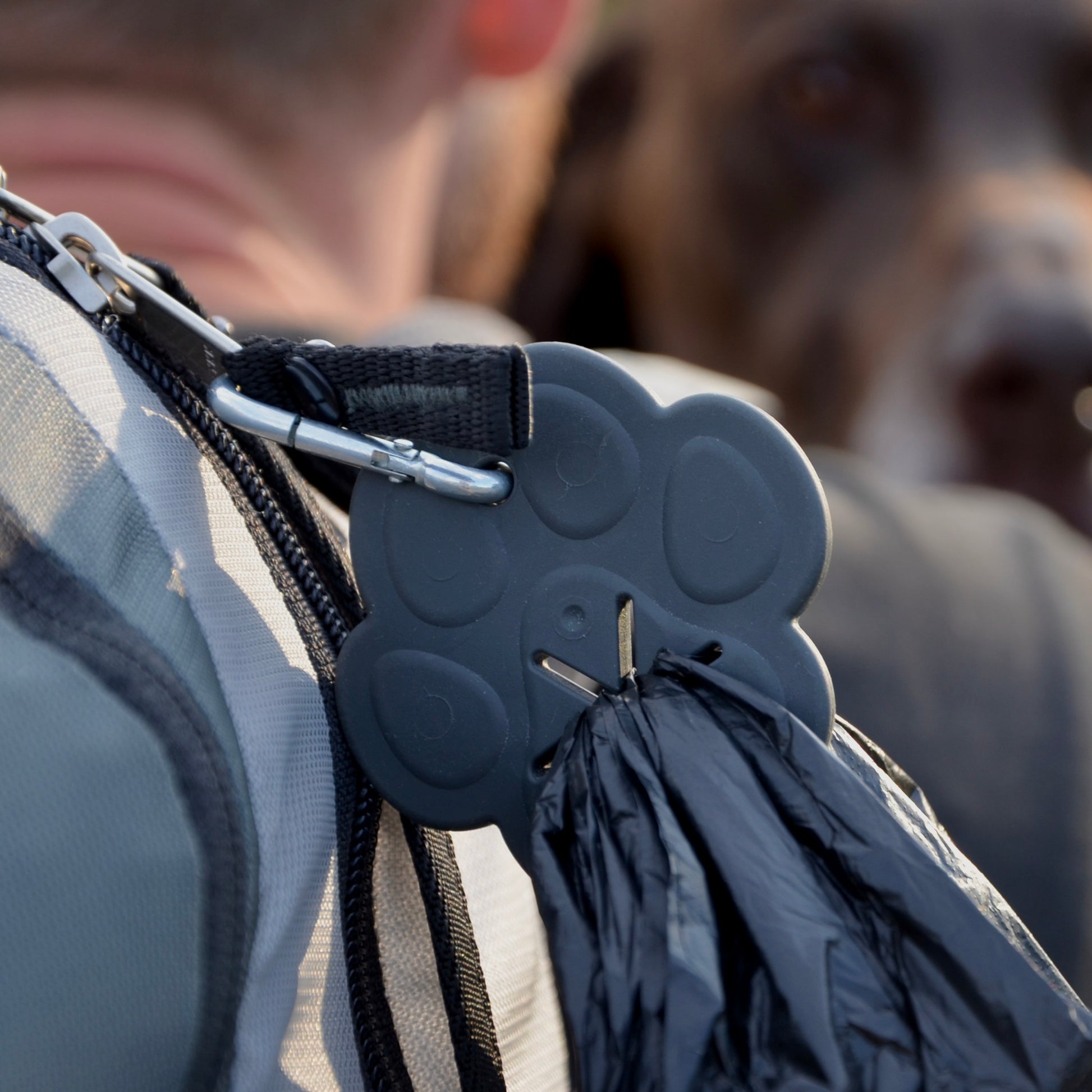 Der schicke PFOTEN-Kotbeutelhalter ist das perfekte Accessoire, um leere Hundetüten immer griffbereit zu haben oder um einen vollen Kotbeutel sicher bis zum Entsorgen in den nächsten Mülleimer zu transportieren.