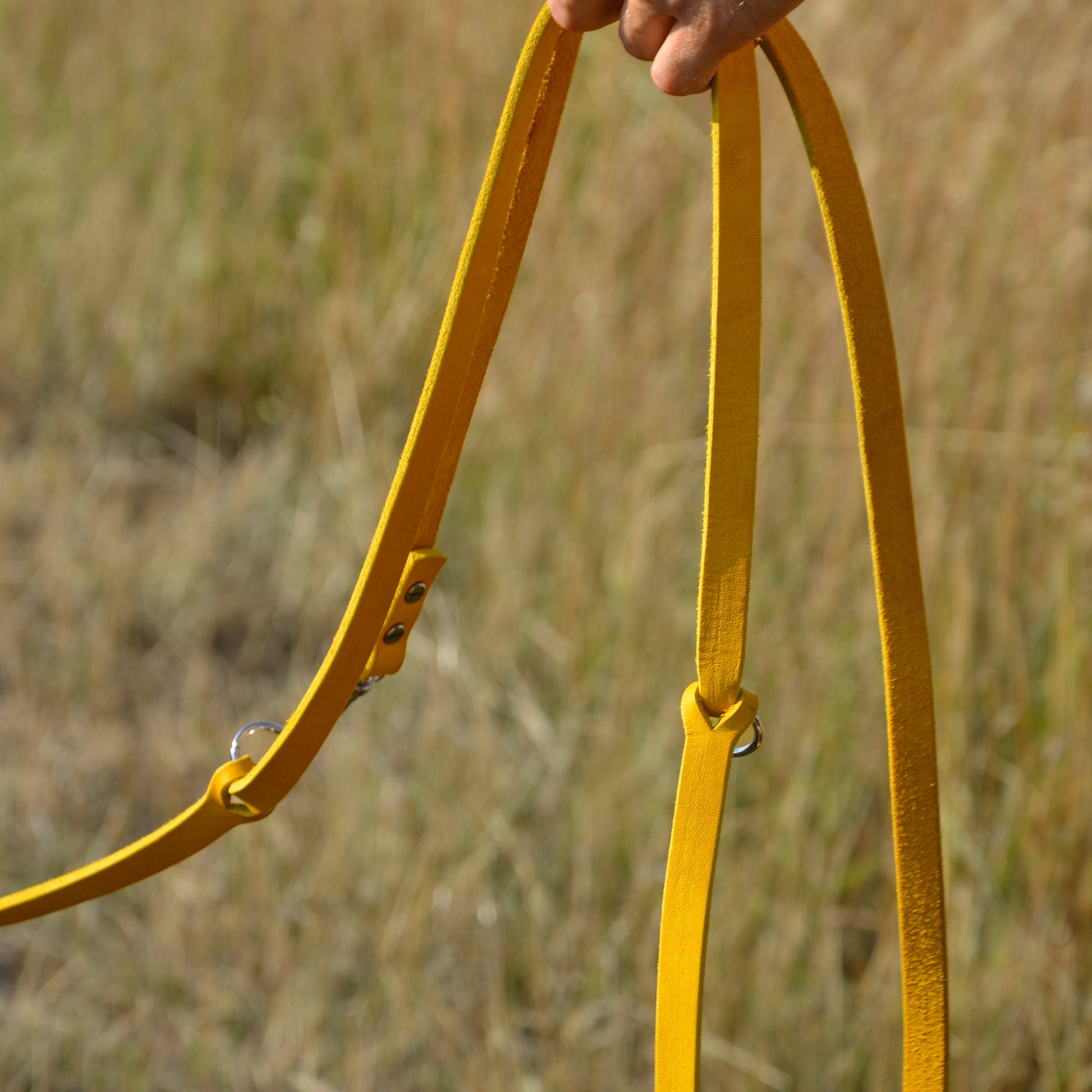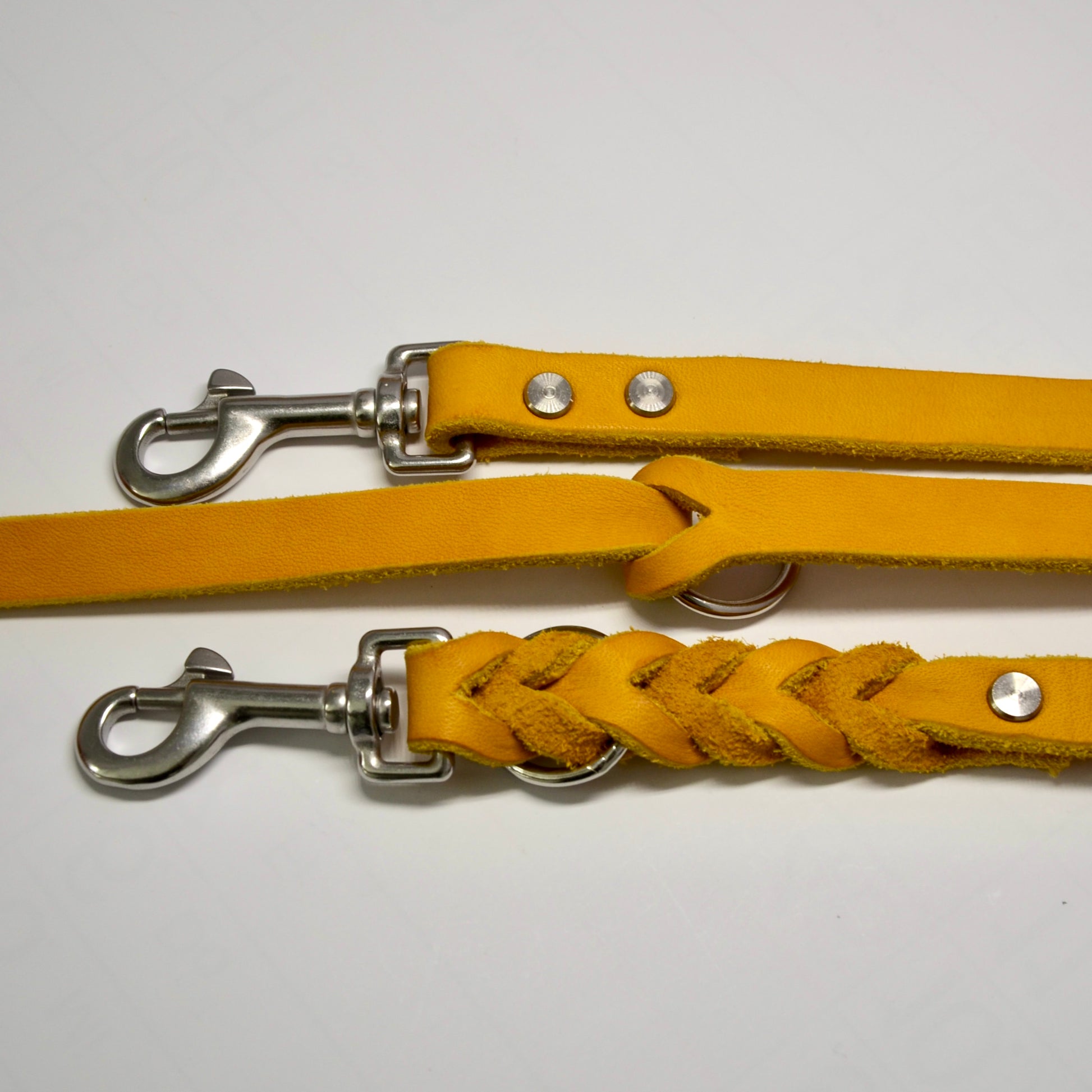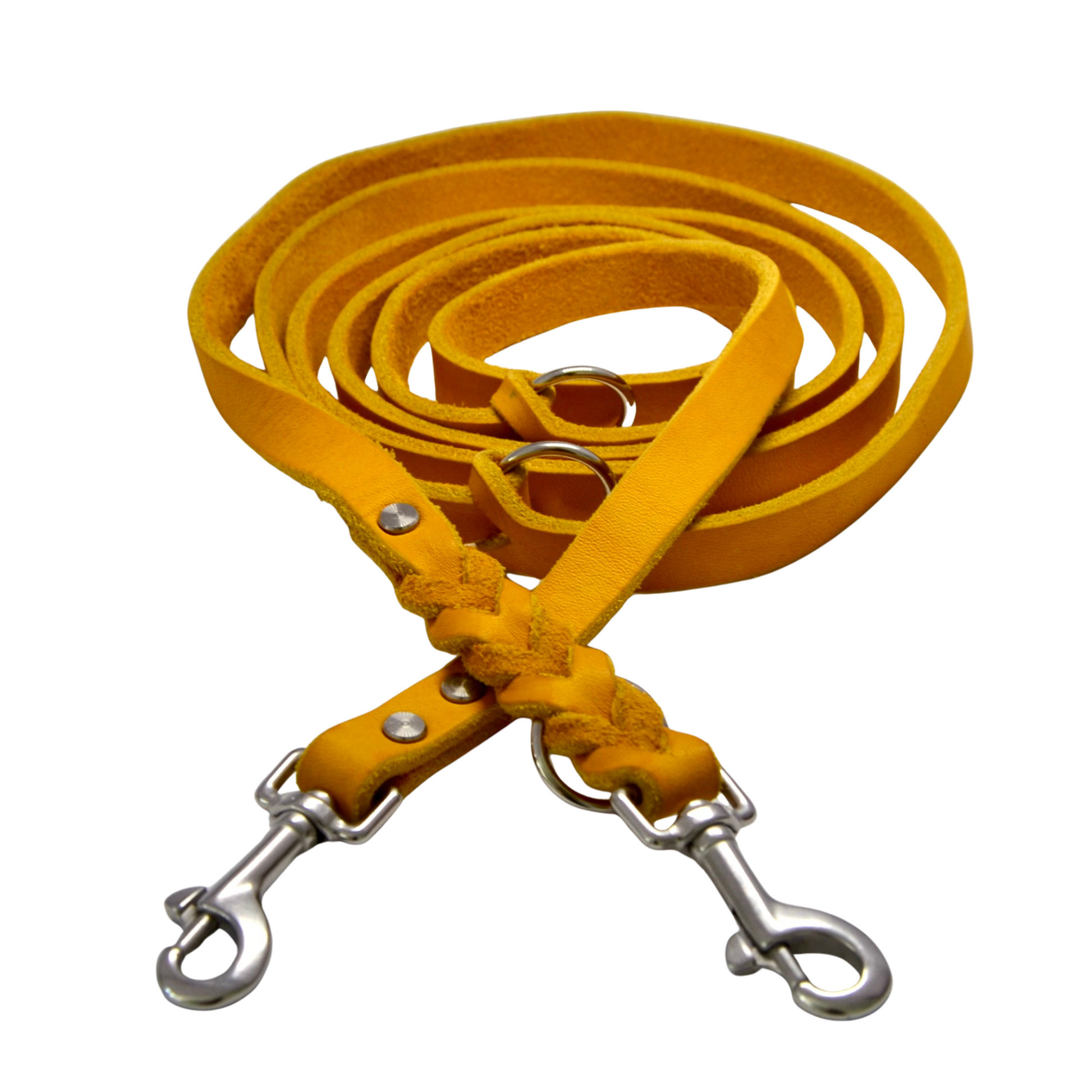 Suchst Du eine robuste, zeitlose und hochwertige Hundeleine, die Dich und Deinen Pfotenheld durch alle Abenteuer begleitet? Dann ist unsere mit Liebe, von Hand gefertigte ROCDOG WALDLÄUFER-Fettlederleine in edlem Curry-Gelb genau das Richtige für Dich!