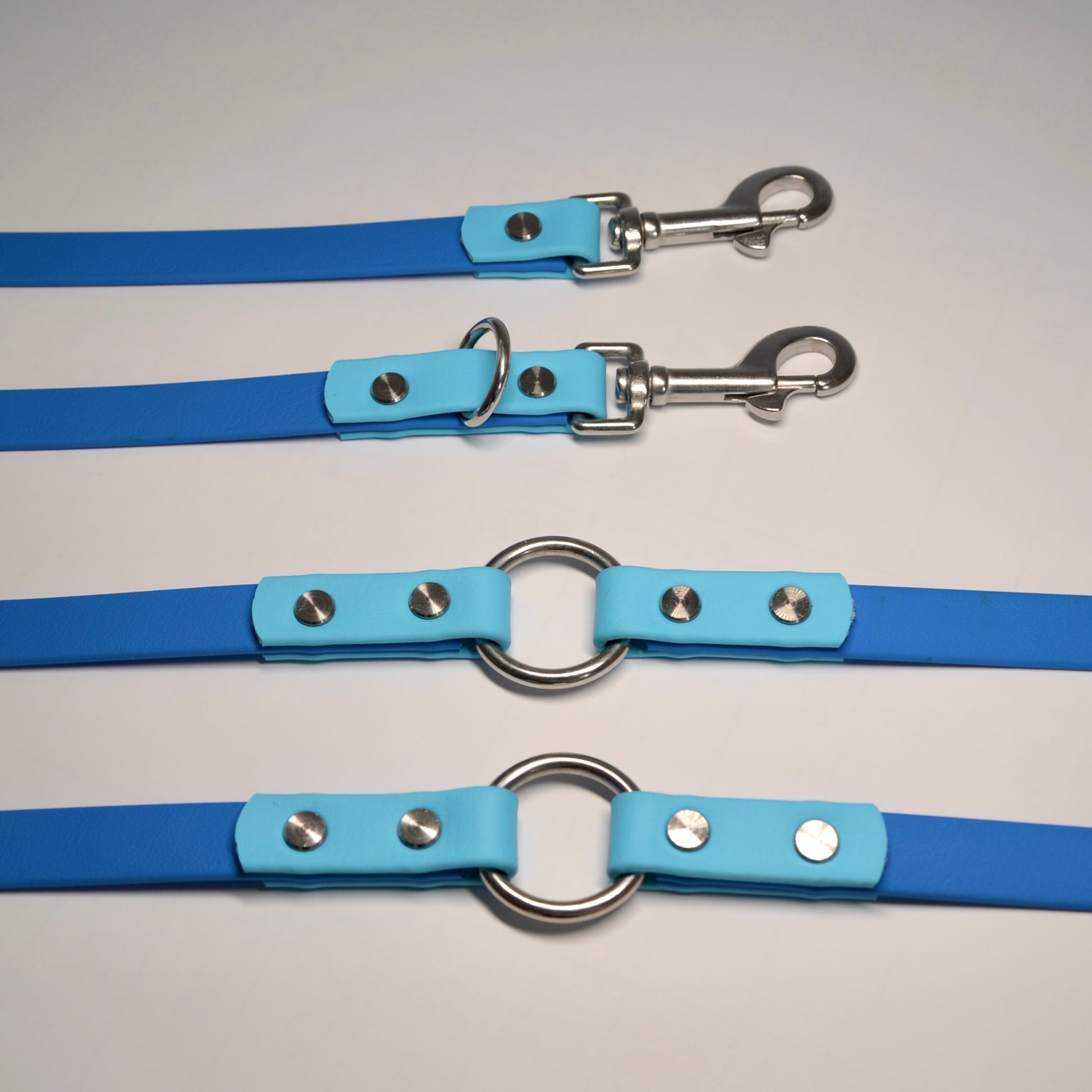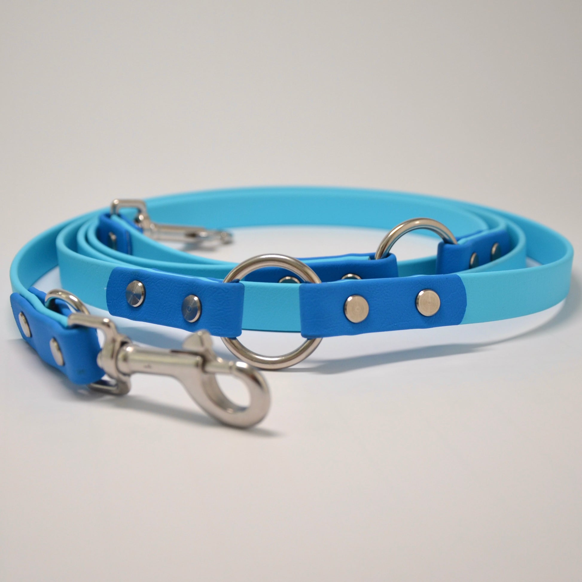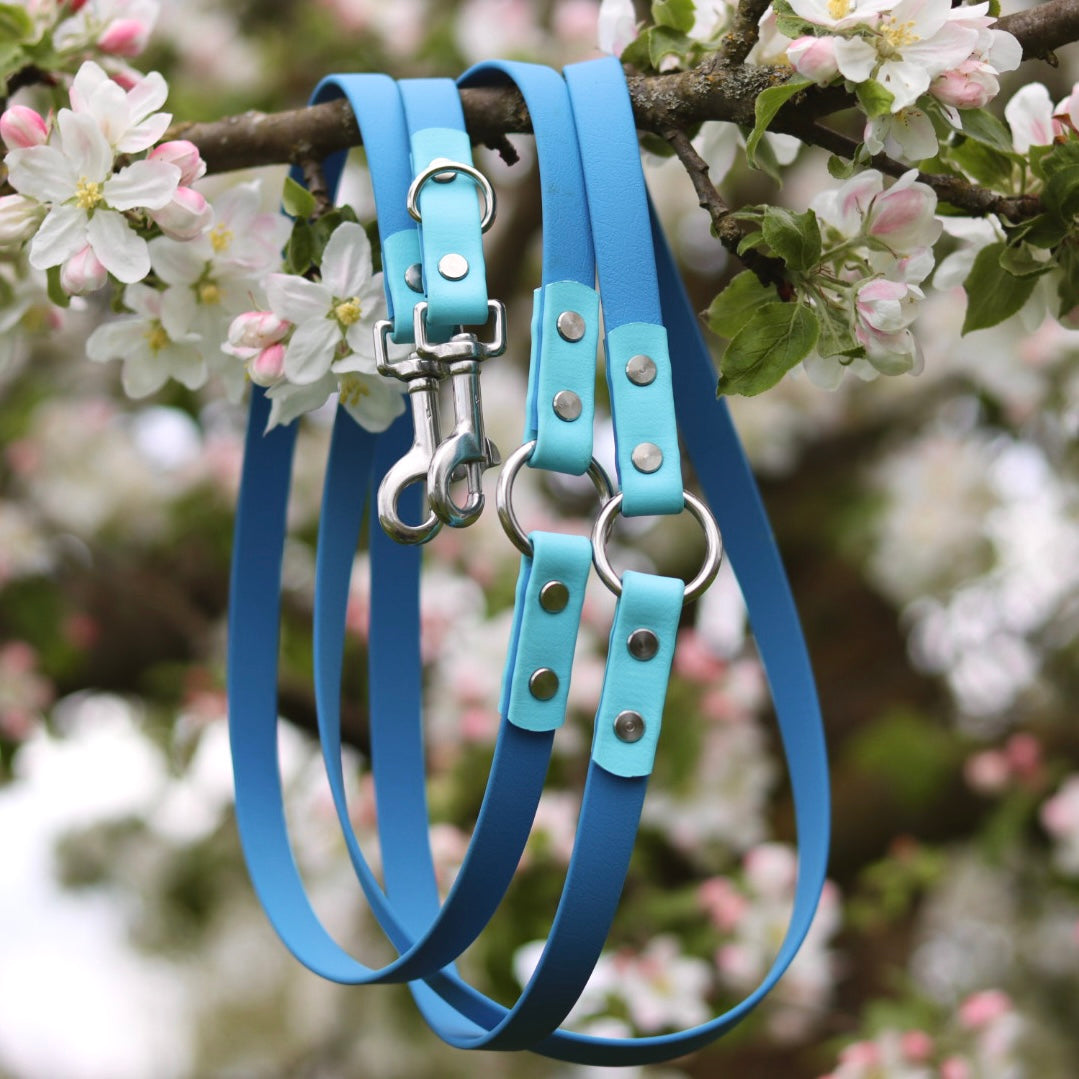 Unsere handgefertigte Biothane Leine in edlem azurblau und knalligem türkis ist nicht nur ein echter Hingucker, sondern auch super praktisch für den Alltag mit Deinem Vierbeiner.